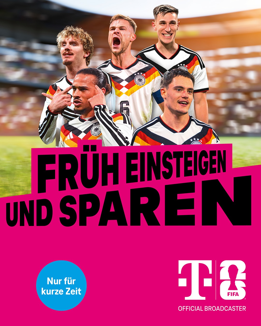 * Aktion gilt bis 16.04.2026 für MagentaTV Neukunden. MagentaTV Smart kostet in den ersten 6 Monaten 0 €/Monat, vom 7.–24. Monat 7 €/Monat und danach 11 €/Monat. Mindestvertragslaufzeit 24 Monate. MagentaTV ist über die MagentaTV App ohne zusätzliche Hardware empfangbar. Auf Wunsch kann die TV-Box MagentaTV One für 5 €/Monat zzgl. 6,95 € Versandkosten mit einer Mindestvertragslaufzeit von 12 Monaten gemietet werden. Alle Preise inkl. der gesetzlichen MwSt. Voraussetzung für die Nutzung ist eine bestehende Internetverbindung. Für die Internetverbindung gelten die Bedingungen des jeweiligen Internetanbieters. Bei Nutzung über das Mobilfunk-Datennetz erfolgt die Belastung des Datenvolumens beim jeweiligen Mobilfunk-Anbieter. Ein Angebot von: Telekom Deutschland GmbH, Landgrabenweg 149, 53227 Bonn.